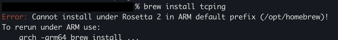 - Cannot install under Rosetta 2 in ARM default prefix (/opt/homebrew)!