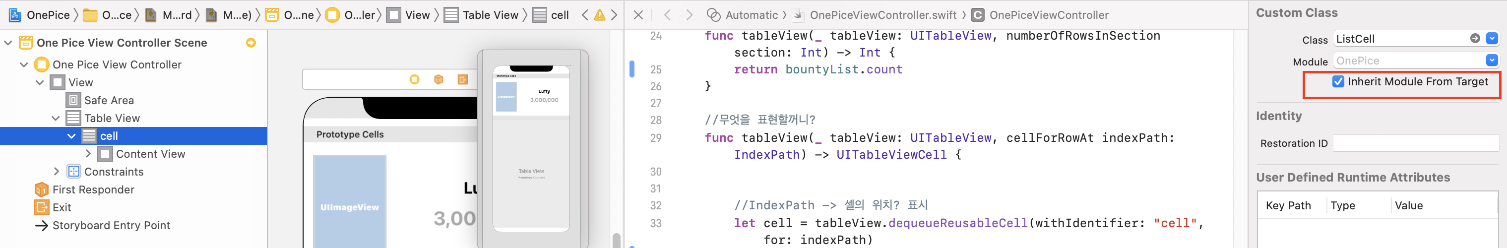 커스텀 셀관련 Class를 넣어준 곳에서!!