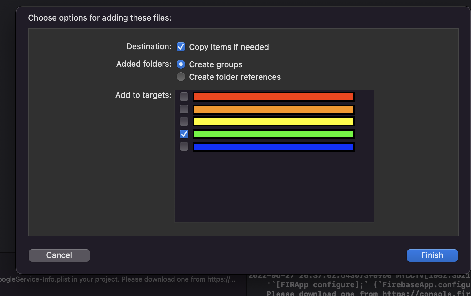 Xcode error - `[FIRApp configure];` (`FirebaseApp.configure()` in Swift) could not find a valid GoogleService-Info.plist in your project. Please download one from https://console.firebase.google.com/." 본문